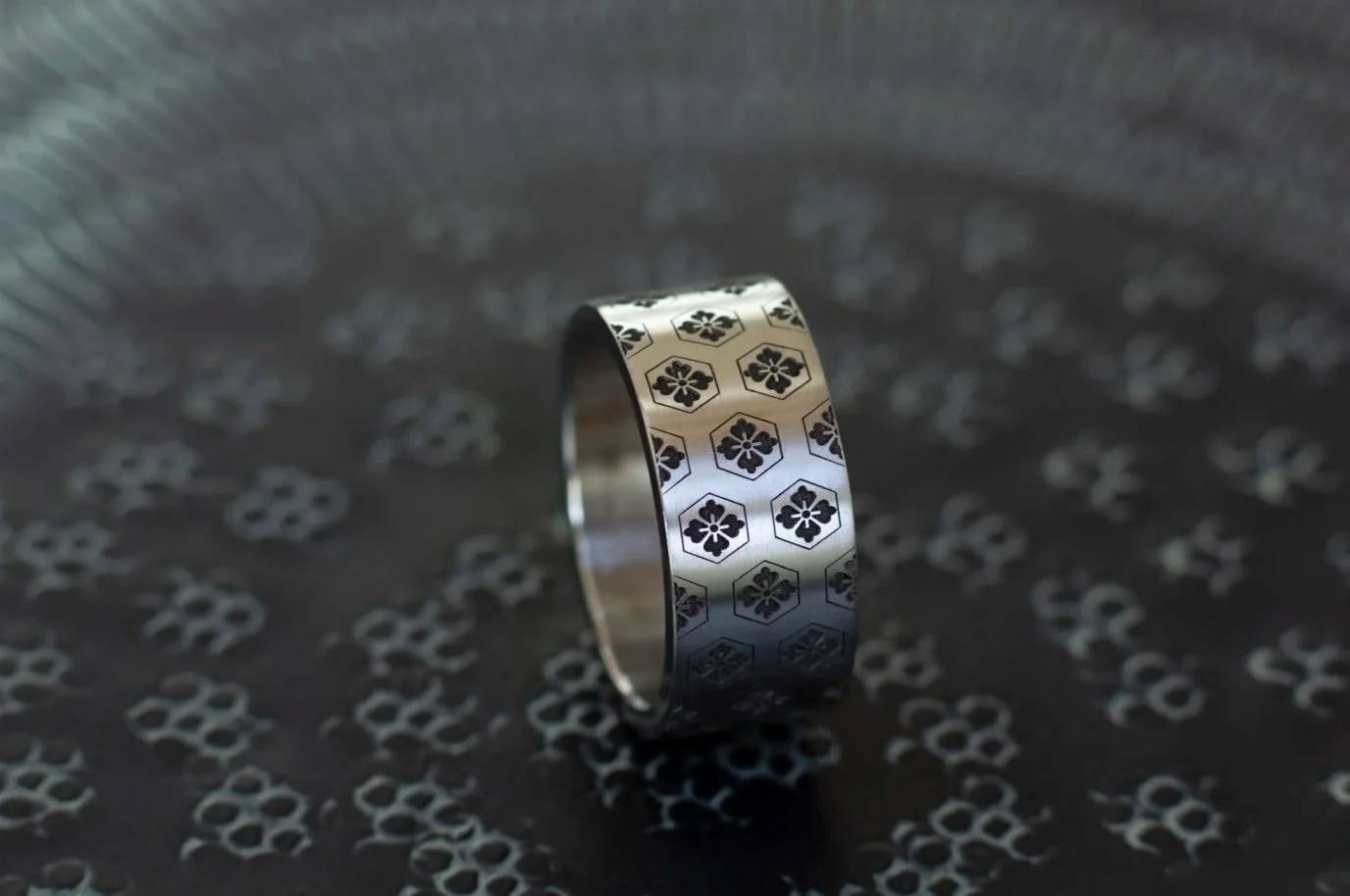 Japans design ring met zwarte diamant, gemaakt van zwart zirkonium